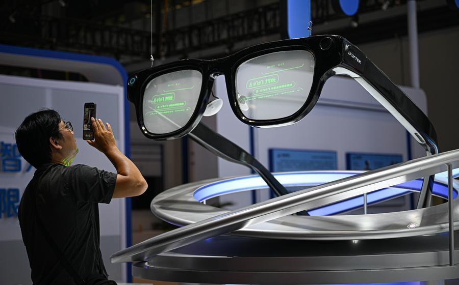 An AI glasses model is pictured at the Hainan International Convention and Exhibition Center, the main venue for the upcoming sixth China International Consumer Products Expo (CICPE), in Haikou, south China's Hainan province, April 10, 2026. [Photo/Xinhua]