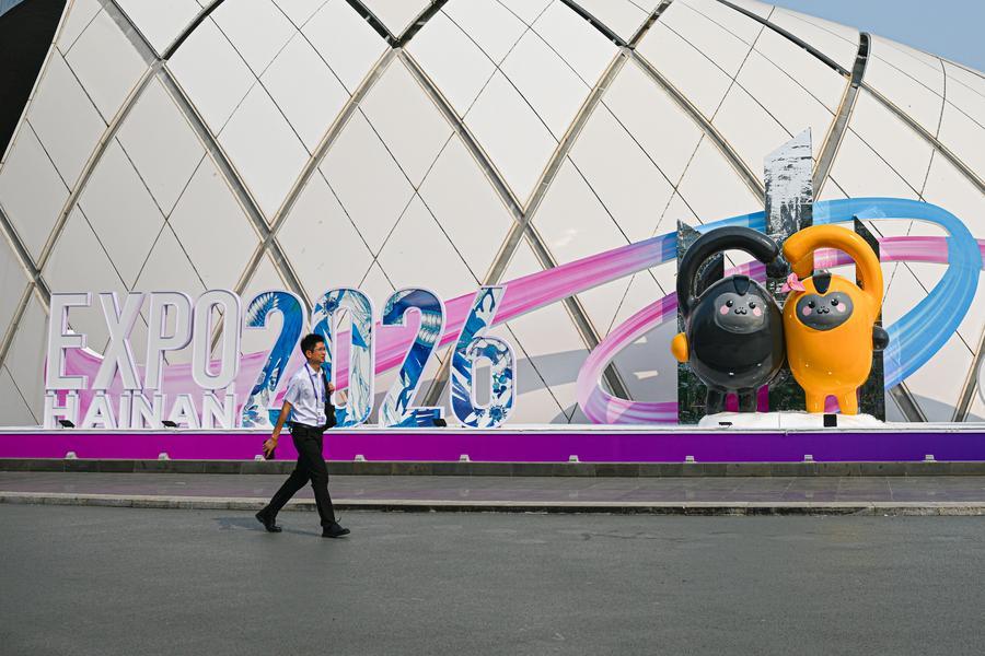 This photo taken on April 11, 2026 shows a view of the Hainan International Convention and Exhibition Center, the main venue for the upcoming sixth China International Consumer Products Expo (CICPE), in Haikou, south China's Hainan province. [Photo/Xinhua]