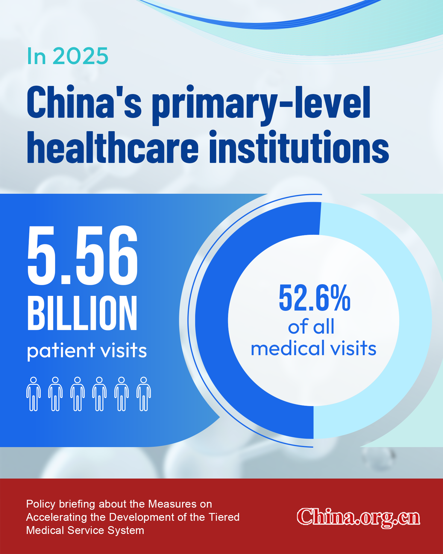 In 2025, China's primary-level healthcare institutions handled 5.56 billion patient visits, accounting for 52.6% of all medical visits to the country's medical facilities. The continued rise in both volume and share indicates that the tiered medical service system is becoming increasingly effective, said Zheng Zhe, vice minister of the National Health Commission, at a policy briefing on Monday.