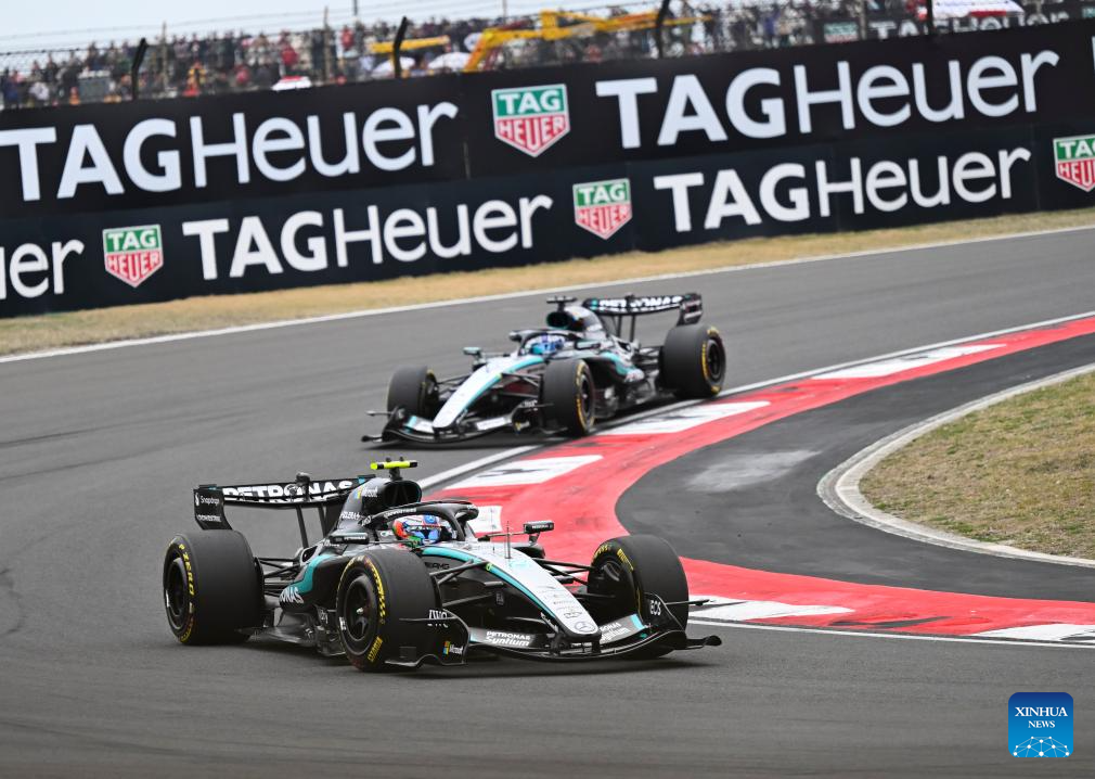 Mercedes' Kimi Antonelli (front) of Italy competes during the Formula One Chinese Grand Prix at Shanghai International Circuit in Shanghai, China, March 15, 2026. (Xinhua/Chen Haoming)