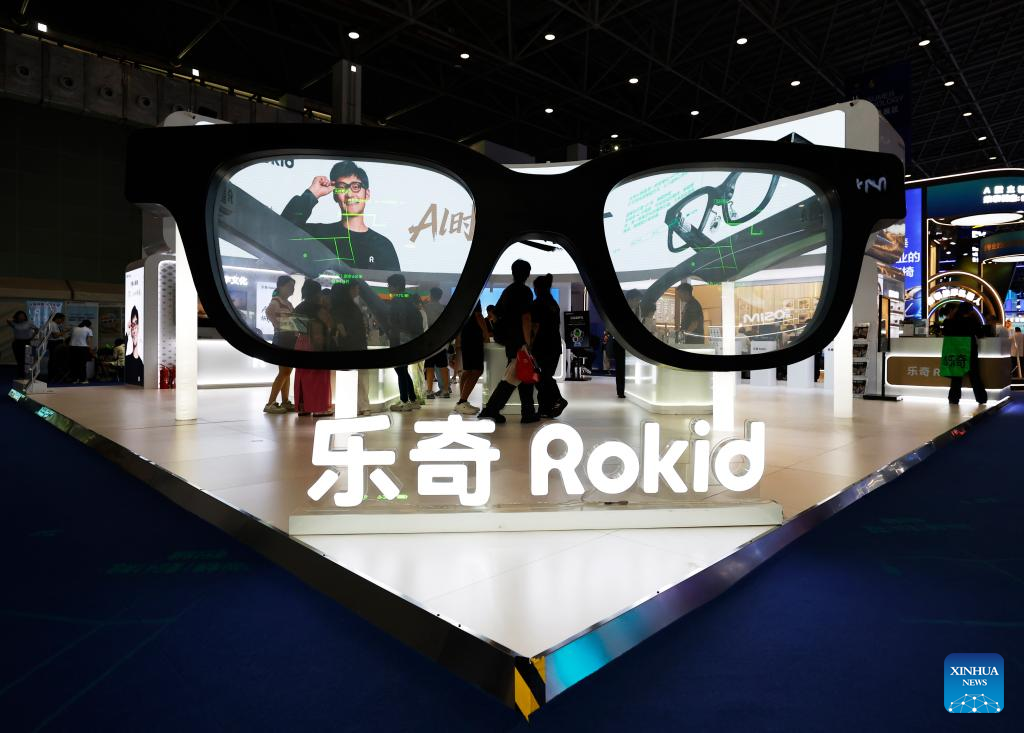 Visitors learn about AI glasses at the booth of Rokid, a Hangzhou-based technology company, during the sixth China International Consumer Products Expo (CICPE) in Haikou, south China's Hainan Province, April 14, 2026. (Xinhua/Gao Jing)