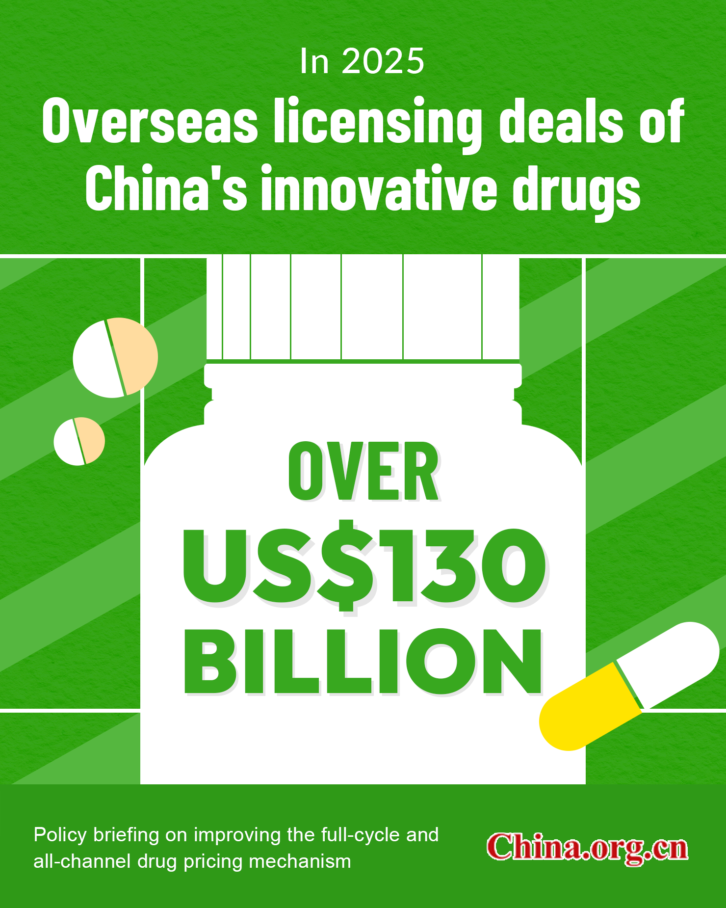 China is surging in global pharma innovation. One-third of the world's innovative drugs in development come from China, including star anti-cancer treatments like Zanubrutinib and Ivonescimab. In 2025, overseas licensing deals for Chinese innovative drugs soared past $130 billion, a historic high for the sector, according to a Wednesday briefing.