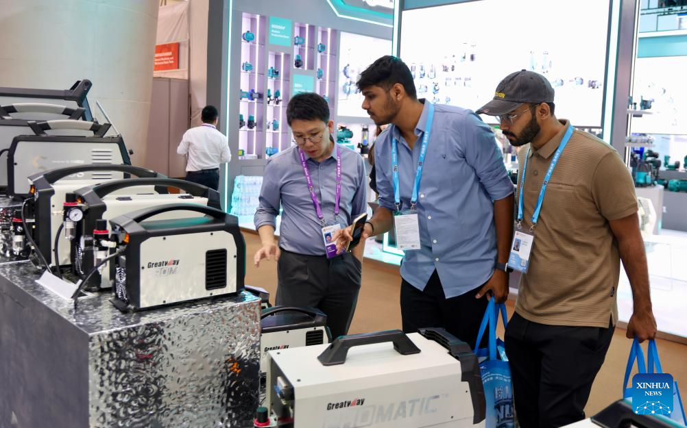 Overseas buyers learn about a product during the 139th edition of the China Import and Export Fair in Guangzhou, south China's Guangdong Province, April 15, 2026. (Xinhua/Lu Hanxin)