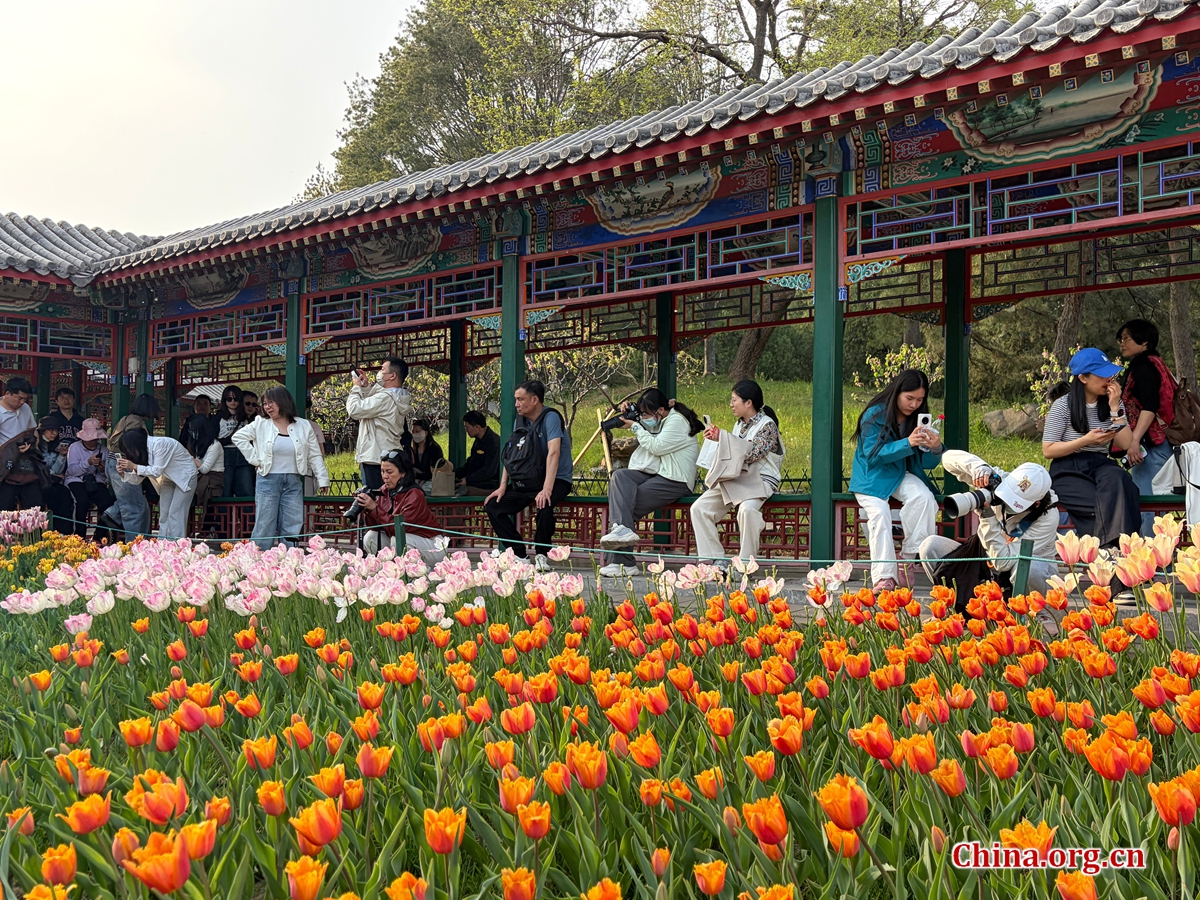 Visitors take photos of tulips at Zhongshan Park in Beijing, April 12, 2026. [Photo by Wang Yiming/China.org.cn]