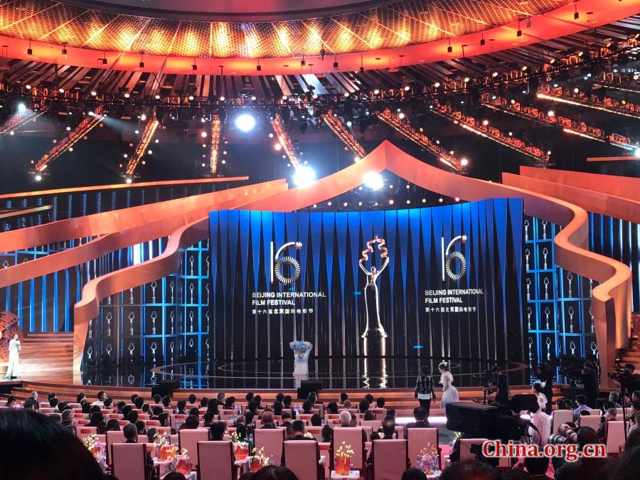 A photo captures the 16th Beijing International Film Festival opening gala in Beijing, April 16, 2026. [Photo by Guo Xiaohong/China.org.cn]