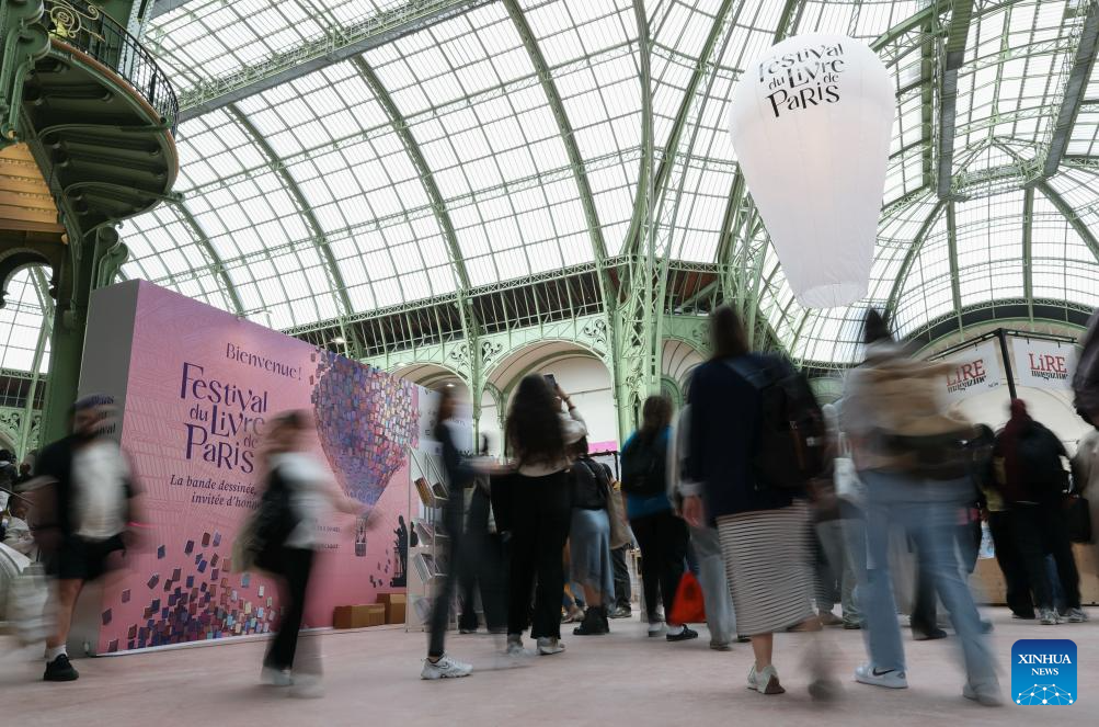 People visit the Paris Book Festival 2026 at the Grand Palais in Paris, France, April 17, 2026. The three-day event opened on Friday. (Xinhua/Wu Huiwo)