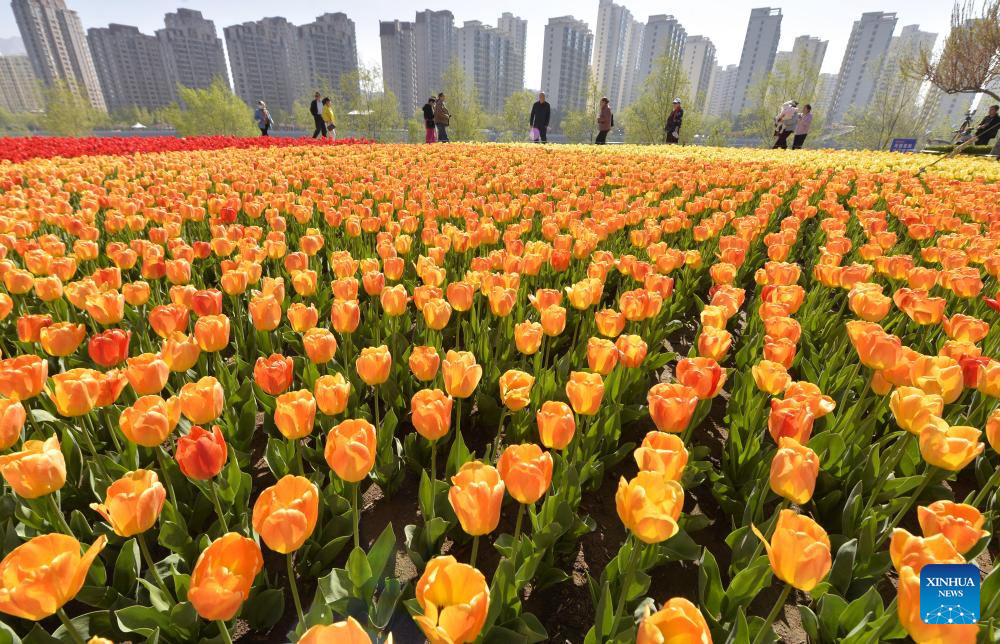 Tourists enjoy blossoms in Liujiaxia Town of Yongjing County, Linxia Hui Autonomous Prefecture of northwest China's Gansu Province, April 17, 2026. [Photo by Shi Youdong/Xinhua]