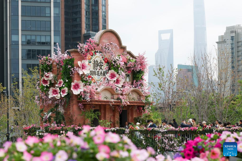 This photo taken on April 18, 2026 shows a scene at a flower fair in Jing'an District of Shanghai, east China. The 2026 Shanghai International Flower Show opened on Saturday with events in two main venues, 10 sub-venues and multiple exhibition spots across the city. (Xinhua/Wang Xiang)