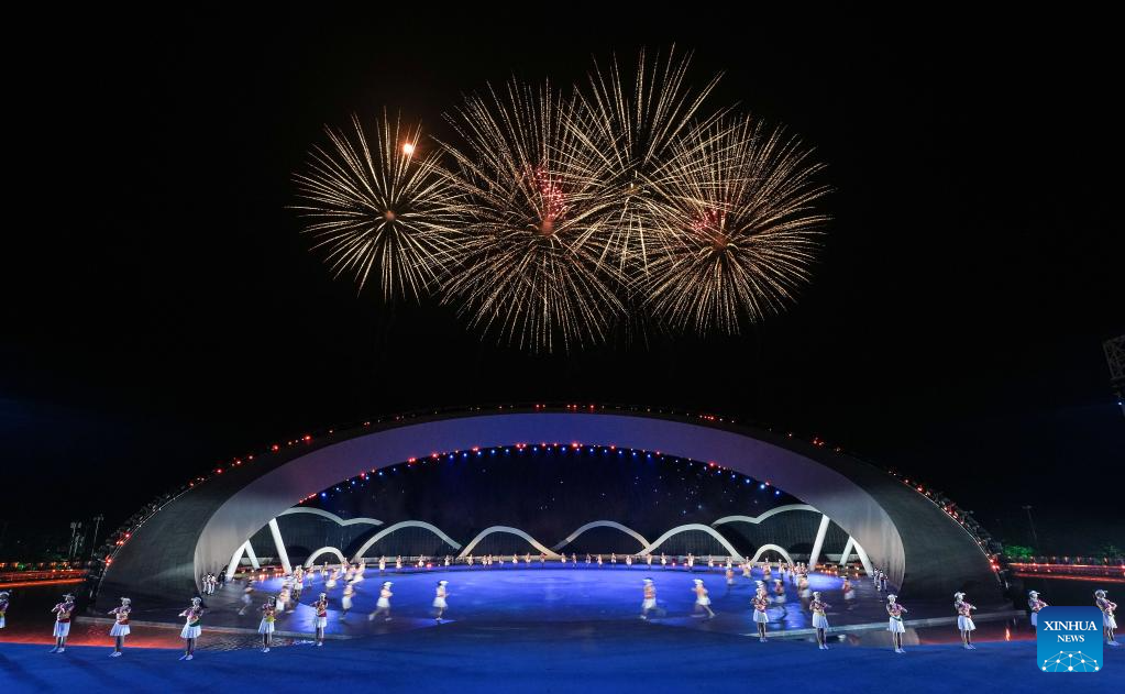 Fireworks explode during the opening ceremony of the 6th Asian Beach Games in Sanya, south China's Hainan Province, April 22, 2026. (Xinhua/Li Ga)