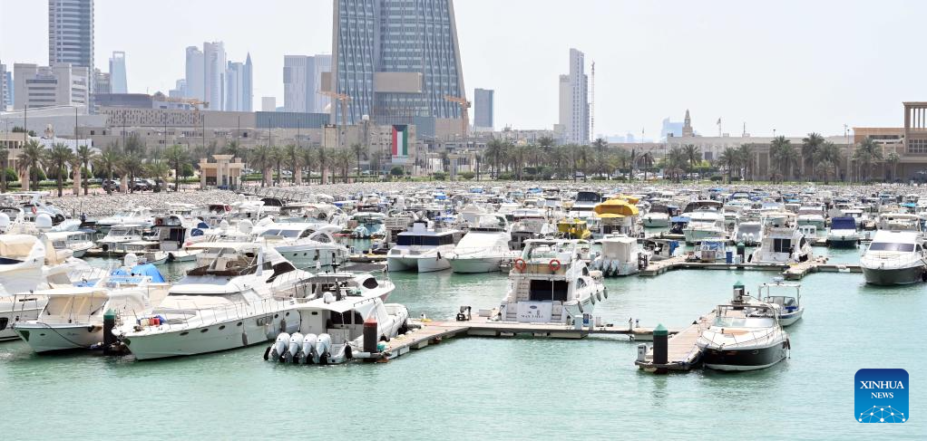 Photo taken on April 22, 2026 shows a dock with Yachts in Kuwait City, Kuwait. Kuwait announced on Wednesday that it will ease maritime restrictions, allowing fishing and recreational boats to operate during daytime hours starting Friday, as part of efforts to regulate sea traffic while maintaining security. [Photo/Xinhua]