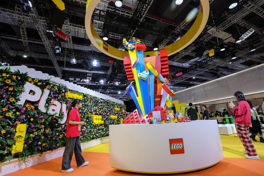 People visit the LEGO booth at the 6th China International Import Expo (CIIE) in east China's Shanghai, Nov. 8, 2023. [Photo/Xinhua]