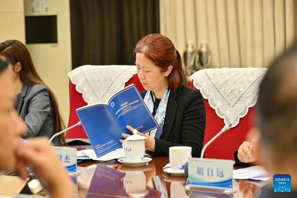 A guest reads a copy of the think tank report titled "Study in China: Contributing to the Building of a Community with a Shared Future for Humanity" during a seminar for release of the report in Beijing, capital of China, April 25, 2026. The report was released by Xinhua Institute, a think tank affiliated with Xinhua News Agency, on Saturday. (Xinhua/Sun Ruibo)