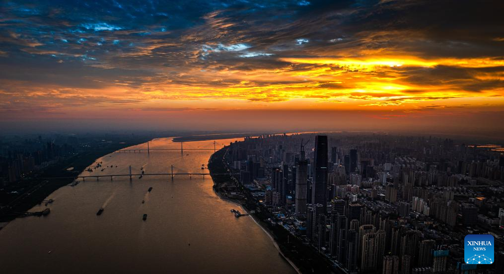 A drone photo taken on July 26, 2025 shows the Second Yangtze River Bridge and the Erqi Yangtze River Bridge in Wuhan, central China's Hubei Province. Currently, nearly 50 bridges have been completed or are under construction along the Yangtze River's Hubei section. [Photo/Xinhua]