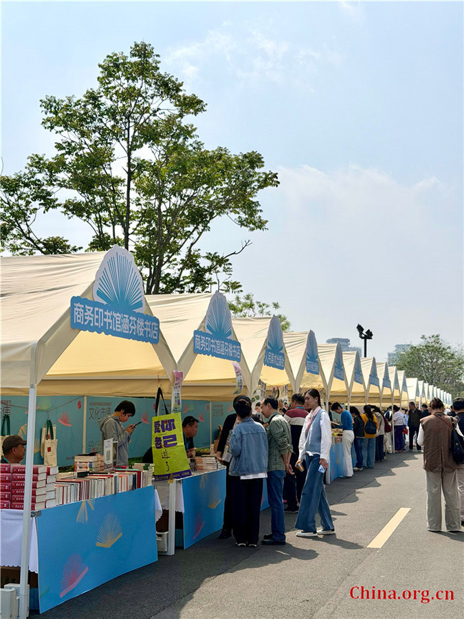 Visitors browse books at booths from various bookstores and publishing houses at the China Publishing Group Reading Week Cultural Market in Beijing, April 23, 2026. [Photo by Liu Caiyi/China.org.cn]
