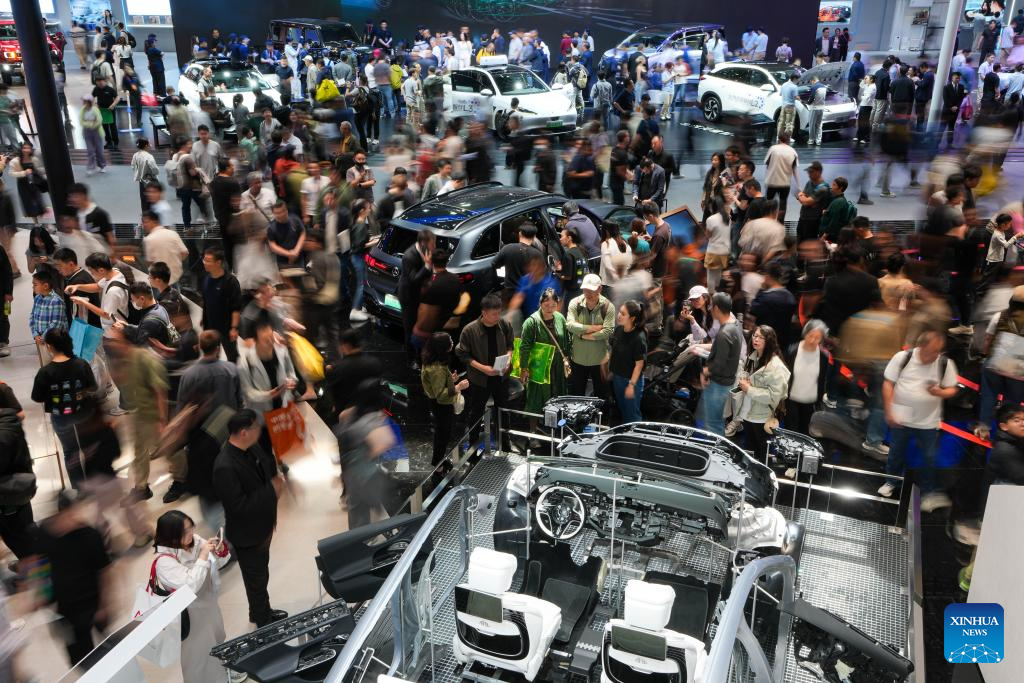 People visit the booths of Mercedes-Benz and Beijing Automotive Group Co., Ltd. during the 2026 Beijing International Automotive Exhibition in Beijing, capital of China, April 26, 2026. (Xinhua/Ju Huanzong)