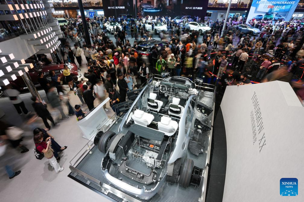 People visit the booth of Mercedes-Benz during the 2026 Beijing International Automotive Exhibition in Beijing, capital of China, April 26, 2026. (Xinhua/Ju Huanzong)