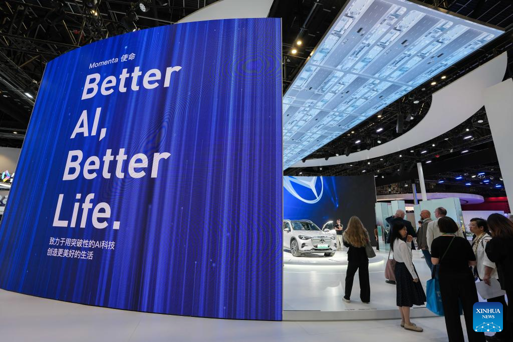 People visit the booth of autonomous driving solutions provider Momenta during the 2026 Beijing International Automotive Exhibition in Beijing, capital of China, April 26, 2026. (Xinhua/Ju Huanzong)