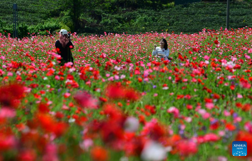 People take photos amid blossoms at a scenic spot in Wuxi, east China's Jiangsu province, April 25, 2026. (Photo by Huan Yueliang/Xinhua)