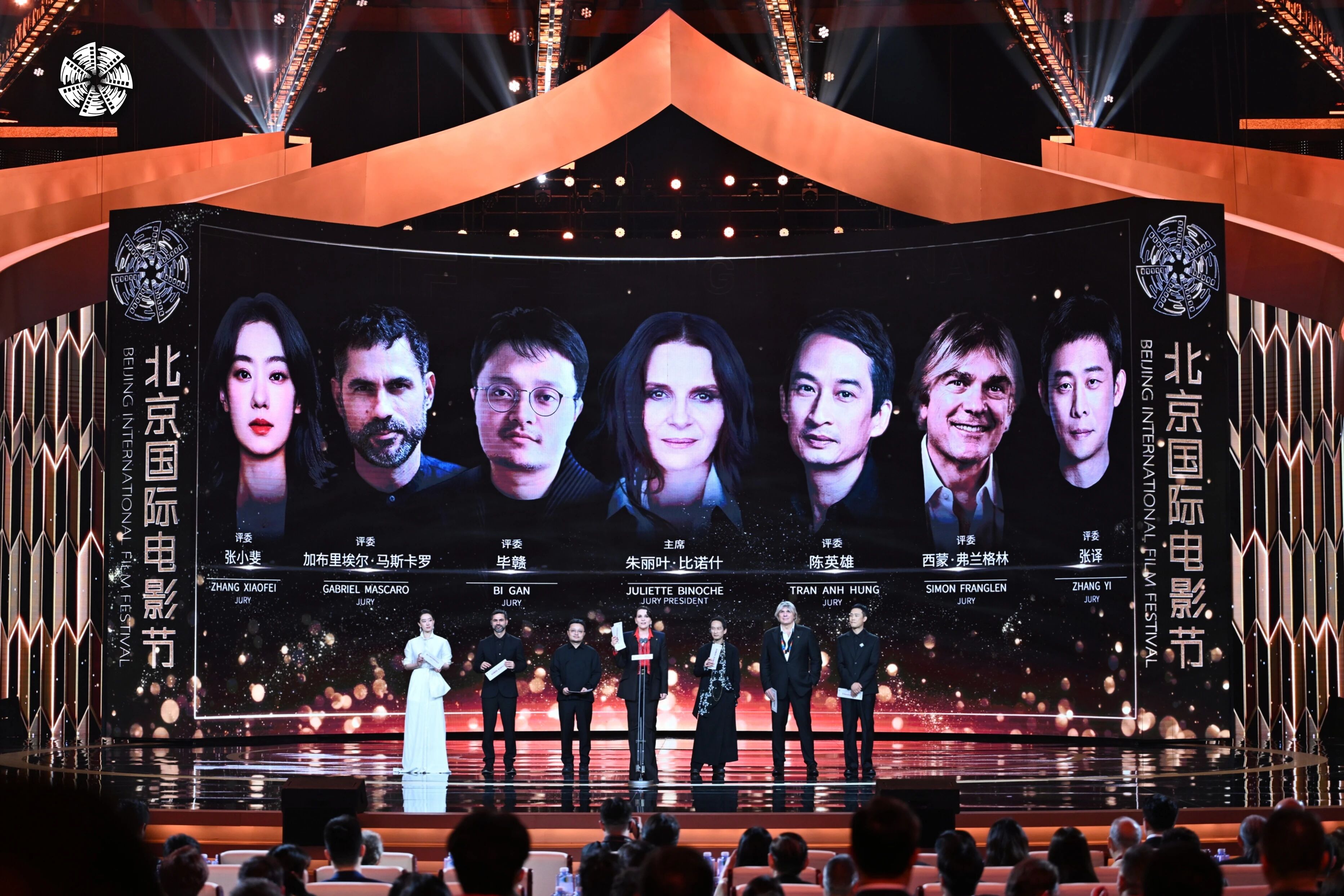 The Tiantan Award jury appears on stage during the closing ceremony of the 16th Beijing International Film Festival in Beijing, April 25, 2026. [Photo courtesy of the BJIFF Organizing Committee]