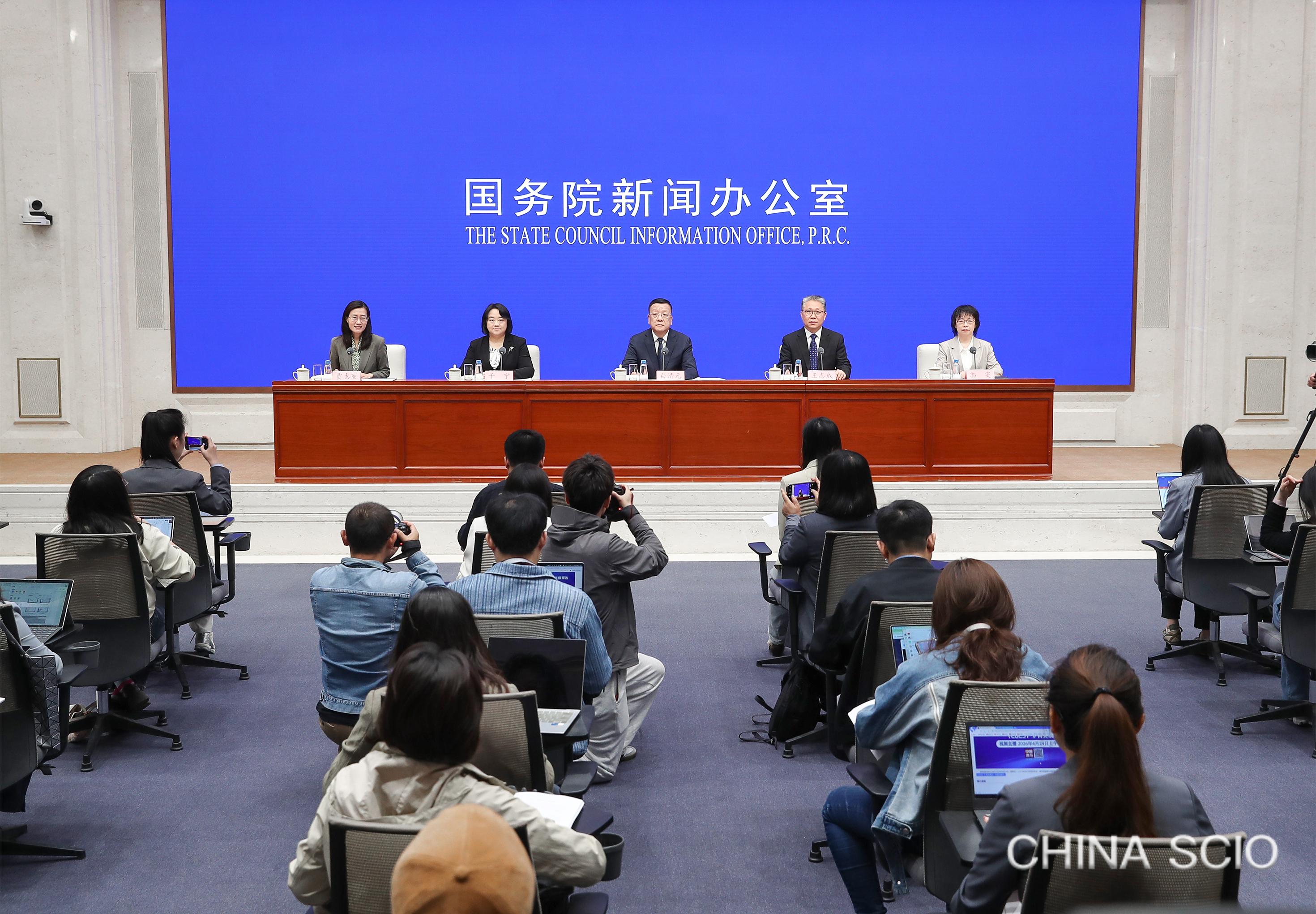 On April 24, 2026, the State Council Information Office holds a press conference in Beijing about the Annual Report on China's Combating of IPR Infringement and Counterfeiting (2025). [Photo by Liu Jian/China SCIO]