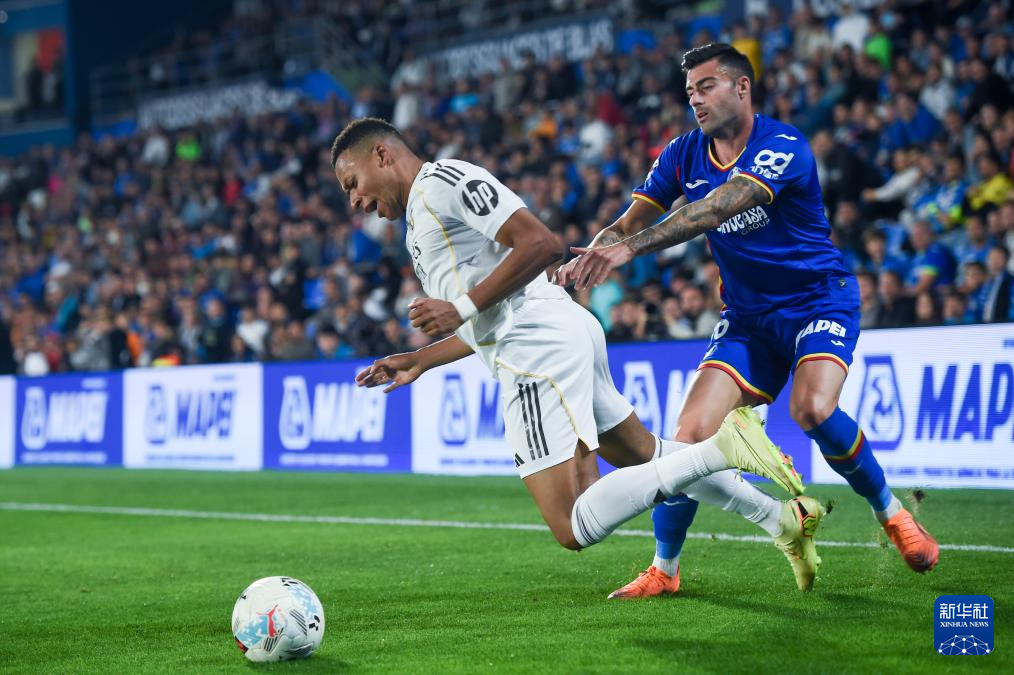 Kylian Mbappe extended his goalscoring streak to 11 consecutive games to help Real Madrid reclaim top spot in La Liga with a 1-0 victory at nine-man Getafe on Sunday. [photo:xinhua]