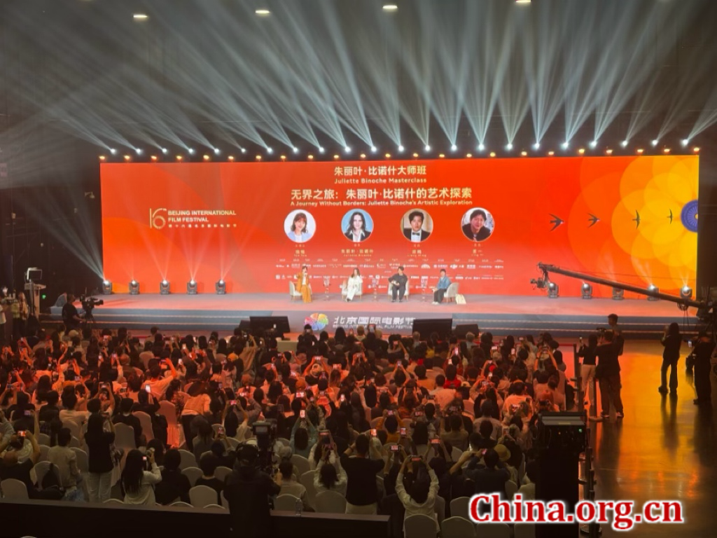 A photo captures the Juliette Binoche Masterclass held during the 16th Beijing International Film Festival in Beijing, April 24, 2026. [Photo by Yang Chuanli/China.org.cn]