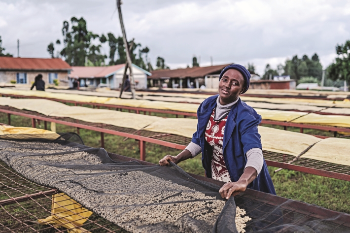 A worker dries coffee beans at a coffee processing plant in Kirinyaga, Kenya, on 18 December 2024 (XINHUA)