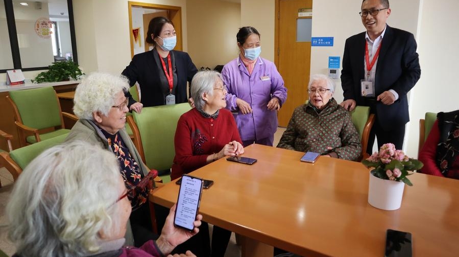 Elderly residents gather to learn the popular AI model DeepSeek at a nursing home in east China's Shanghai on Feb. 26, 2025. [Photo/Xinhua]