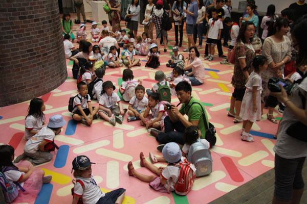 A special exhibition of artwork created by kids from the Children's House Montessori Kindergarten is held at the Ullens Center for Contemporary Art in Beijing on Wednesday, June 1, 2011. [CRI]
