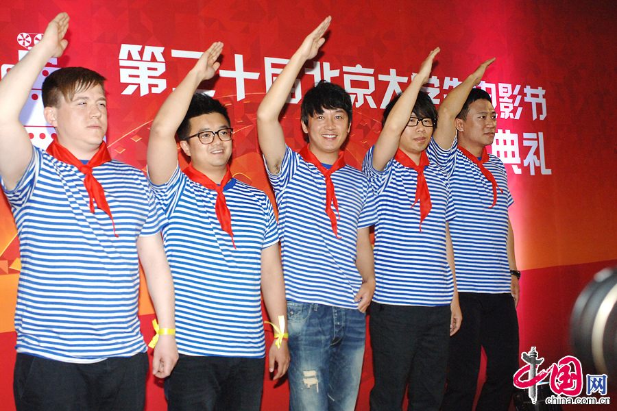 E-mail China.org.cn, May 14, 2013Chinese actor Pan Yueming (M) walks the closing ceremony red carpet of the 20th Beijing College Student Film Festival on May 15, 2013 in Beijing, capital of China. [Photo by Kou Lai'ang/China.org.cn]