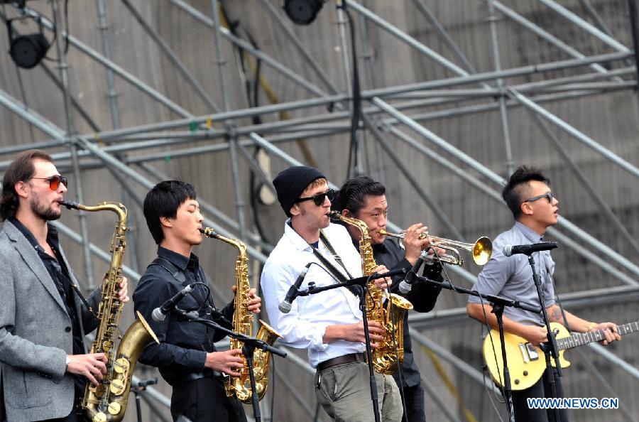 Chinese band "the Trouble" performs during the Tianyu Music Festival in Lijiang, southwest China's Yunnan Province, Oct. 2, 2013. Bands and musicians will take part in the three-day festival which kicked off on Wednesday. (Xinhua/Chen Haining) |