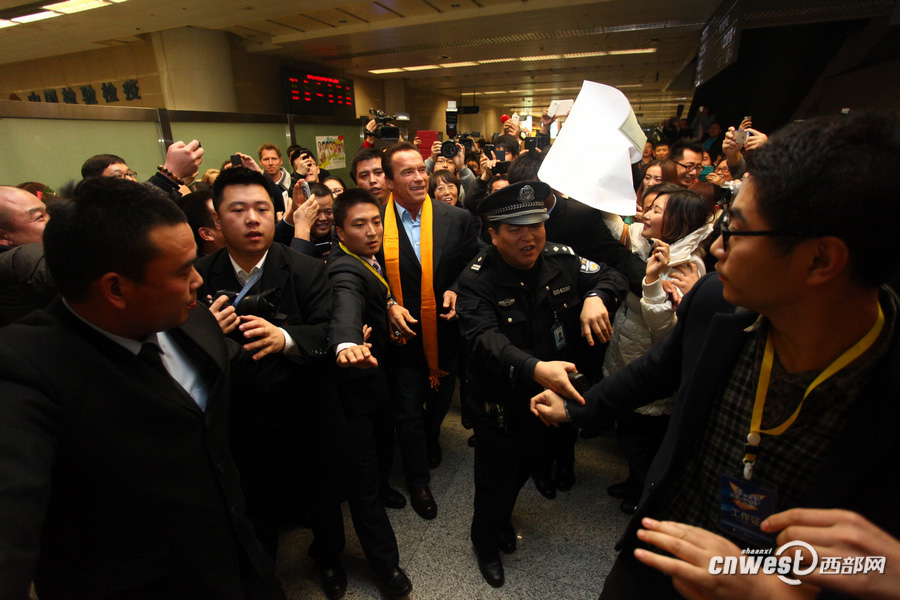 Arnold Schwarzenegger appeared in Xi'an Xianyang International Airport at 22:03 on Dec. 4, 2013. Fans are crazy about him.