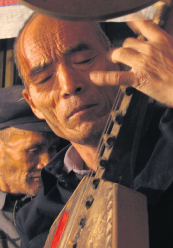 Lyu Chongde, from Shaanxi province, has been devoted to shadow playing for decades. [Photo/China Daily]