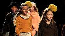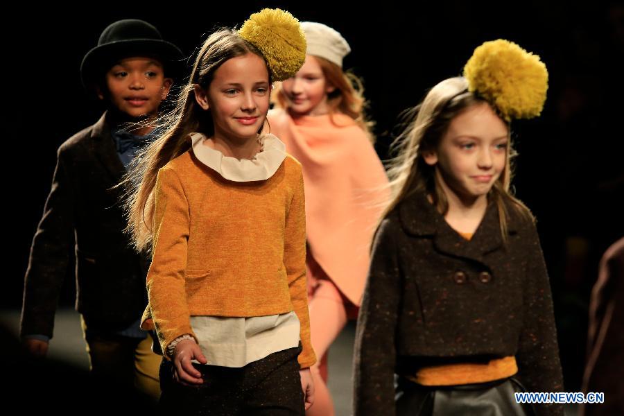 Children models present creations of CND By Condor during the 15th "080 Barcelona Fashion" in Barcelona, Spain, Feb. 3, 2015. (Xinhua/Pau Barrena)