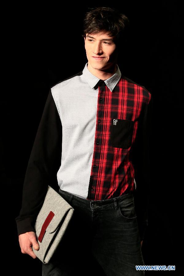 A model presents a creation by Desigual during the 15th "080 Barcelona Fashion" in Barcelona, Spain, Feb. 3, 2015. (Xinhua/Pau Barrena)