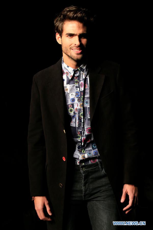 A model presents a creation by Desigual during the 15th "080 Barcelona Fashion" in Barcelona, Spain, Feb. 3, 2015. (Xinhua/Pau Barrena)
