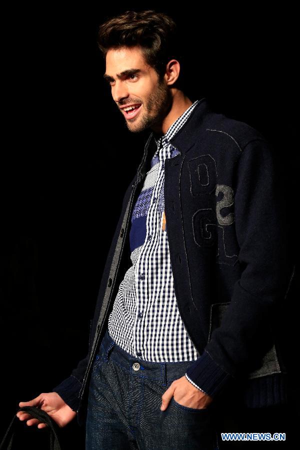 A model presents a creation by Desigual during the 15th "080 Barcelona Fashion" in Barcelona, Spain, Feb. 3, 2015. (Xinhua/Pau Barrena)