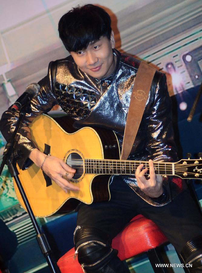 Singaporean singer JJ Lin performs during his birthday party in Taipei, southeast China's Taiwan, March 21, 2015. (Xinhua)