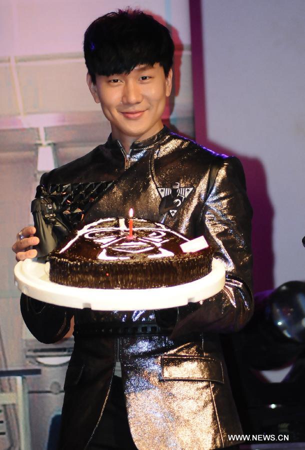 Singaporean singer JJ Lin performs during his birthday party in Taipei, southeast China's Taiwan, March 21, 2015. (Xinhua)