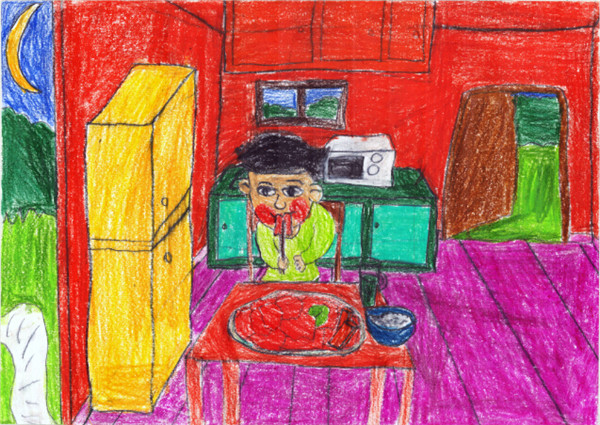 Autistic children's artwork is displayed at "Blank Lattice," an exhibit that is part of the Love under the Sky Painting Exhibition series, at 798 Art District in Beijing on April 2, 2015. [China.org.cn]