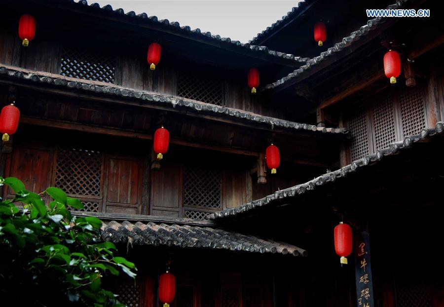 | Red lanterns are hung on a house in Heijing ancient town in Lufeng County, southwest China's Yunnan Province, Jan. 31, 2015. Lanterns in China have a long history and they have become synonymous with Chinese culture. Even today, they are still made and enjoyed by the Chinese worldwide. They were used as a means of artistic expression, in terms of functionality, design and decoration. Chinese streets in both cities and towns are decorated with red lanterns during festivals, especially Chinese Lunar New Year, Mid-Autumn Festival and Lantern Festival. [Photo/Xinhua] |