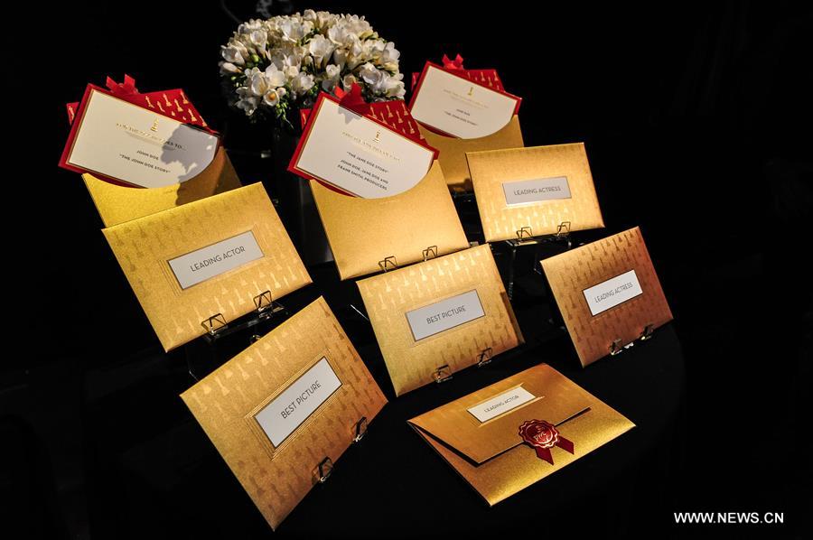 | Gold Oscar envelopes are displayed at the 88th Academy Awards Governors Ball Press Preview in Los Angeles, United States, on Feb. 18, 2016. The 88th Academy Awards ceremony will be held at the Dolby Theatre in Los Angeles on Feb. 28. (Xinhua/Zhang Chaoqun) |