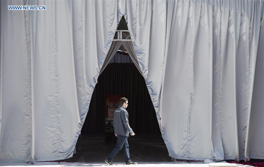 A staff member walks past the resting area during the preparations for the 88th Academy Awards in Hollywood, Los Angeles, the United States, Feb. 24, 2016. The Academy Awards will be held on Feb. 28. (Xinhua/Yang Lei)