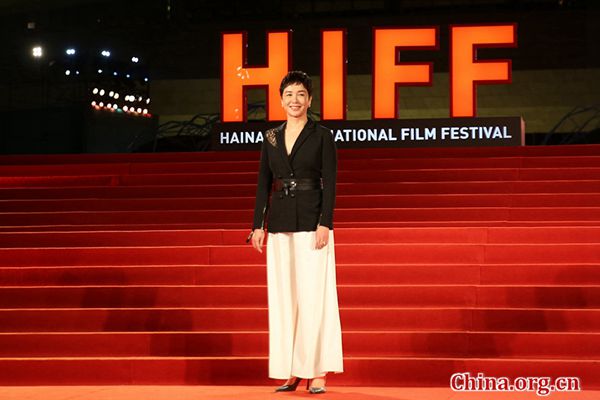 Chinese actress Jiang Wenli poses for a photo on the red carpet at the first Hainan International Film Festival that opened in Sanya, Hainan province, Dec. 11, 2018. [Photo/ China.org.cn]