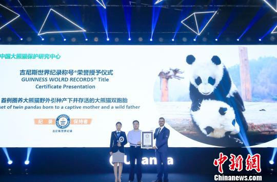 A pair of pandas, born to a captive mother and a wild father in Southwest China's Sichuan Province, received a certificate from the Guinness World Records in Beijing on Wednesday.