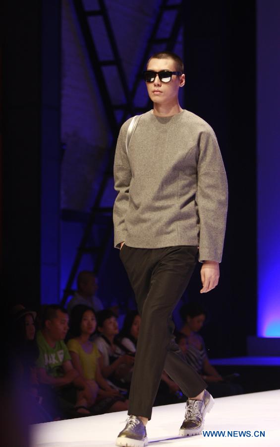 A model presents a creation during a fashion event showcasing works by graduates of the ESMOD (L'Ecole Superieure des Arts et Techniques de la Mode) Beijing, an international fashion institute, in Beijing, China, July 18, 2013. (Xinhua/Hou Dongtao) |