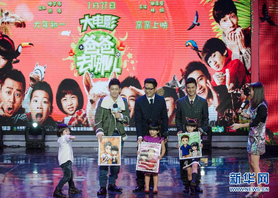 A press conference of the film "Where are we going, dad?", based on Hunan TV's reality show with the same name, was held in Beijing, capital of China, on Jan. 7, 2014. The film will premiere on Jan. 31, 2014. The reality show was participated by several star dads, including Chinese actor Guo Tao, former world diving champion Tian Liang and actor-singer Jimmy Lin, as well as their lovely kids. [Photo/Xinhua] |