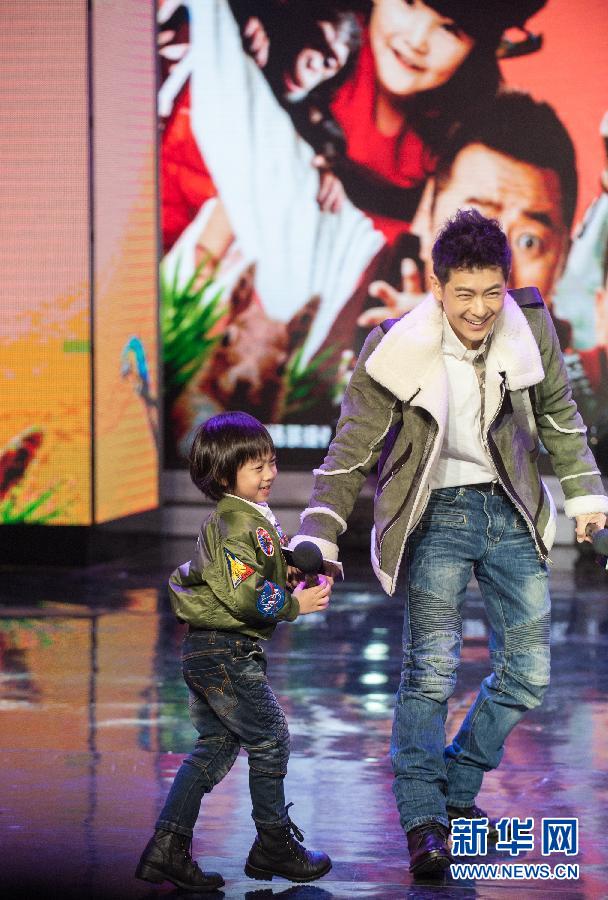 A press conference of the film "Where are we going, dad?", based on Hunan TV's reality show with the same name, was held in Beijing, capital of China, on Jan. 7, 2014. The film will premiere on Jan. 31, 2014. The reality show was participated by several star dads, including Chinese actor Guo Tao, former world diving champion Tian Liang and actor-singer Jimmy Lin, as well as their lovely kids. [Photo/Xinhua]