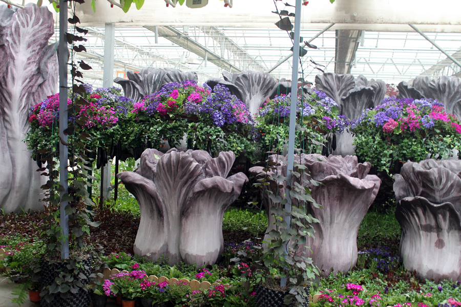 Themed “Agriculture and Art,” the Agriculture Art Experience Exhibition Park is divided into six parts, named Melon Time, Secrets of Purple Vegetables, Orchid Wonderland, Cereals School, Amazing Plants and Artifacts Corridor. Citizens could take in a variety of melon kinds, get to know more about purple vegetables, admire the orchid’s beauty and learn about functional plants at the exhibition area. [Photo by Mi Xingang/China.org.cn]
