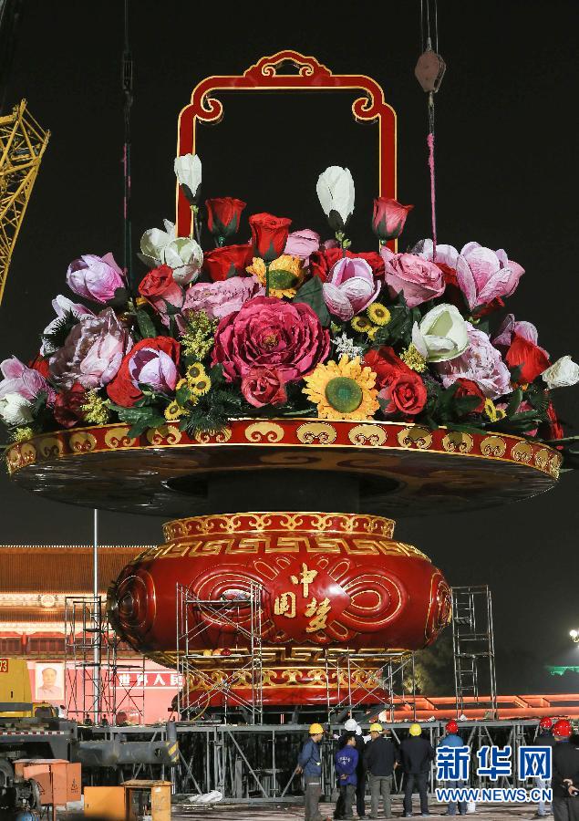 Theme flower terraces "Best Wishes for Our Homeland" were set atTiananmen Square to celebrate the upcoming National Day in Beijing, capital of China,Sept.24, 2014.